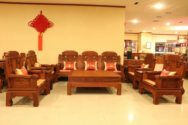 大家好,今天我們福林堂紅木要為大家介紹的這一款沙發,其名字內容較為通俗意賅——“豪華如意”。“豪華”之意:一是代表其所選用材質——緬花的珍貴,二是因為那浮華鐫秀裝點紋飾的富麗;而如意則指的是這些紋飾在其內部所承載的深厚寓意,這其中包含有喻以吉祥富貴吸財之意的大象紋、代表祥和福瑞之意的麒麟紋、還有寓帶五福象征不老不衰的梅花紋、以及擁有幸福之意的蝙蝠紋、銅錢、魚紋、銅鈴紋飾等等,它們以物喻情,這也是紅木家具不同于多數一般類普通家具的重要標志所在,可以說,它們已經不單單是一件生活中的家具品那么簡單,這其中也包含了所使用主人內在的精神世界追求和意志情感寄托之需要。