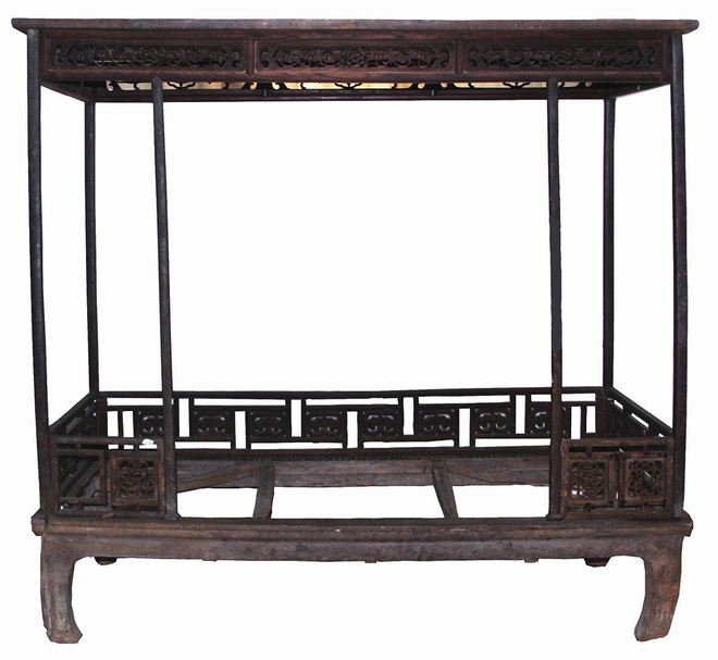 明·櫸木雕盤腸架子床